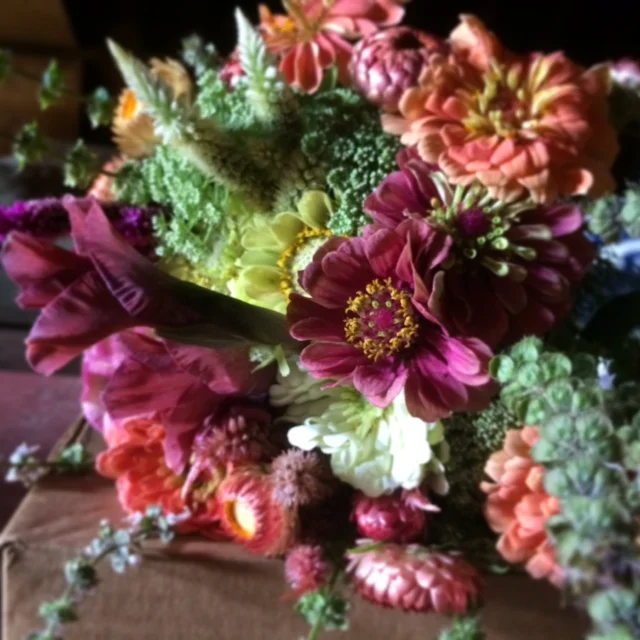 It's another beautiful late summer day, despite what the weatherman says. And as you well know, late summer is the best time for local eating, with everything at peak season. So come help yourself to tomatoes, sweet corn, fingerling potatoes, apples, peaches and all the rest. It doesn't get any better than this. Today we have:
