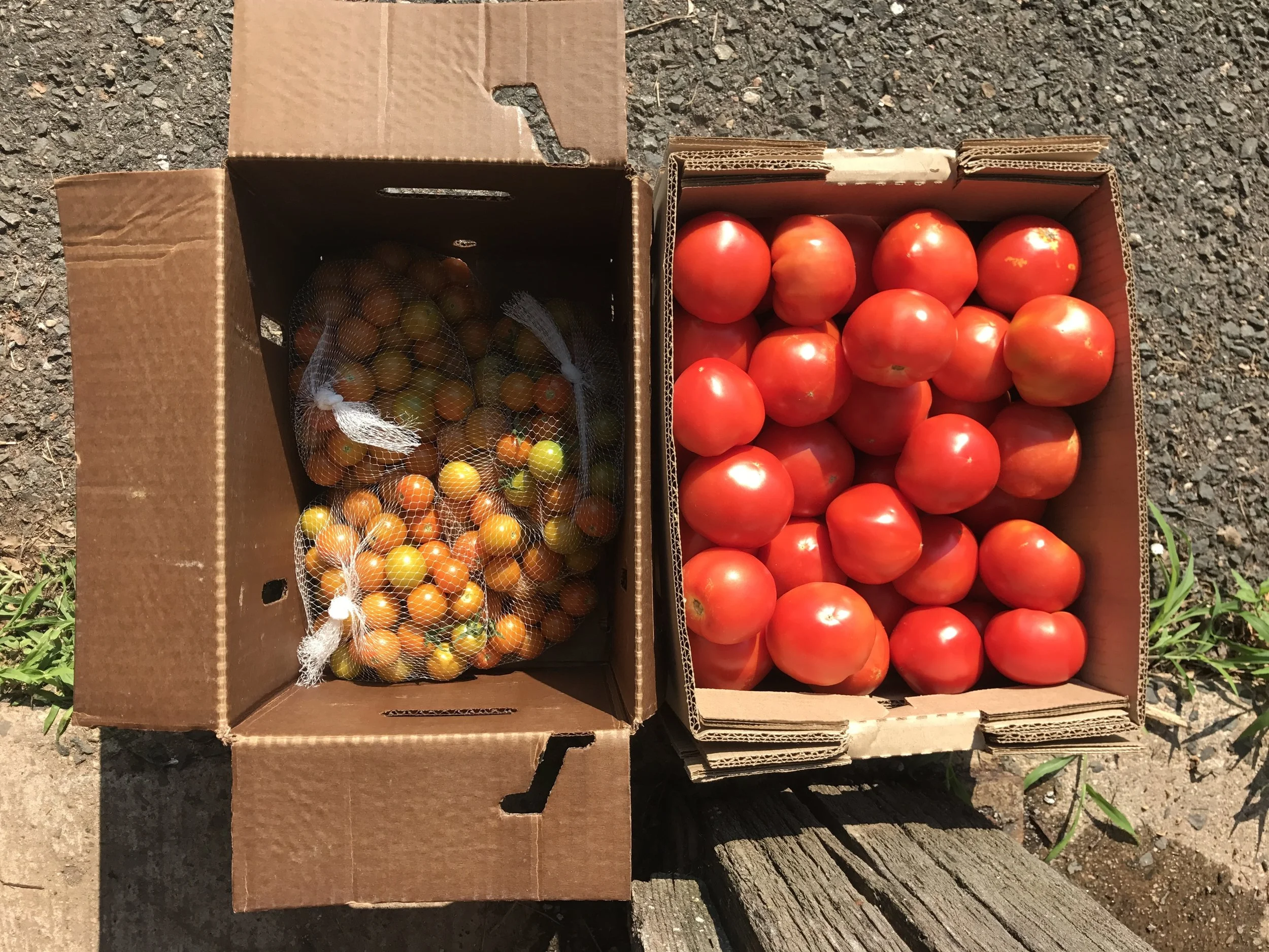 For anyone who missed out on tomatoes yesterday, we have some for you today! And for you lucky early birds we have our first sun gold tomatoes of the season. :)