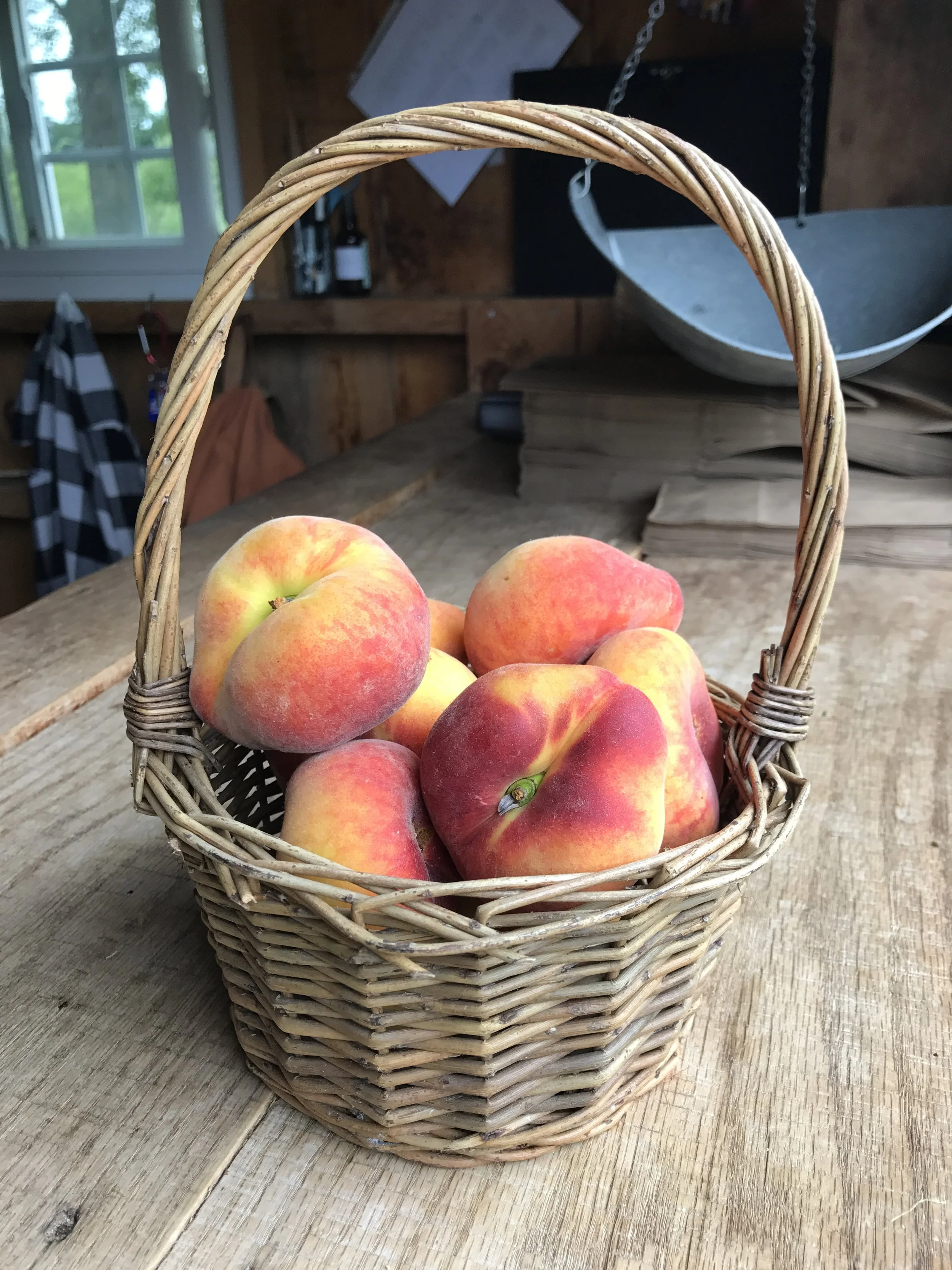 We have doughnut peaches for you today, $3.50 per pound, grown in Glastonbury.