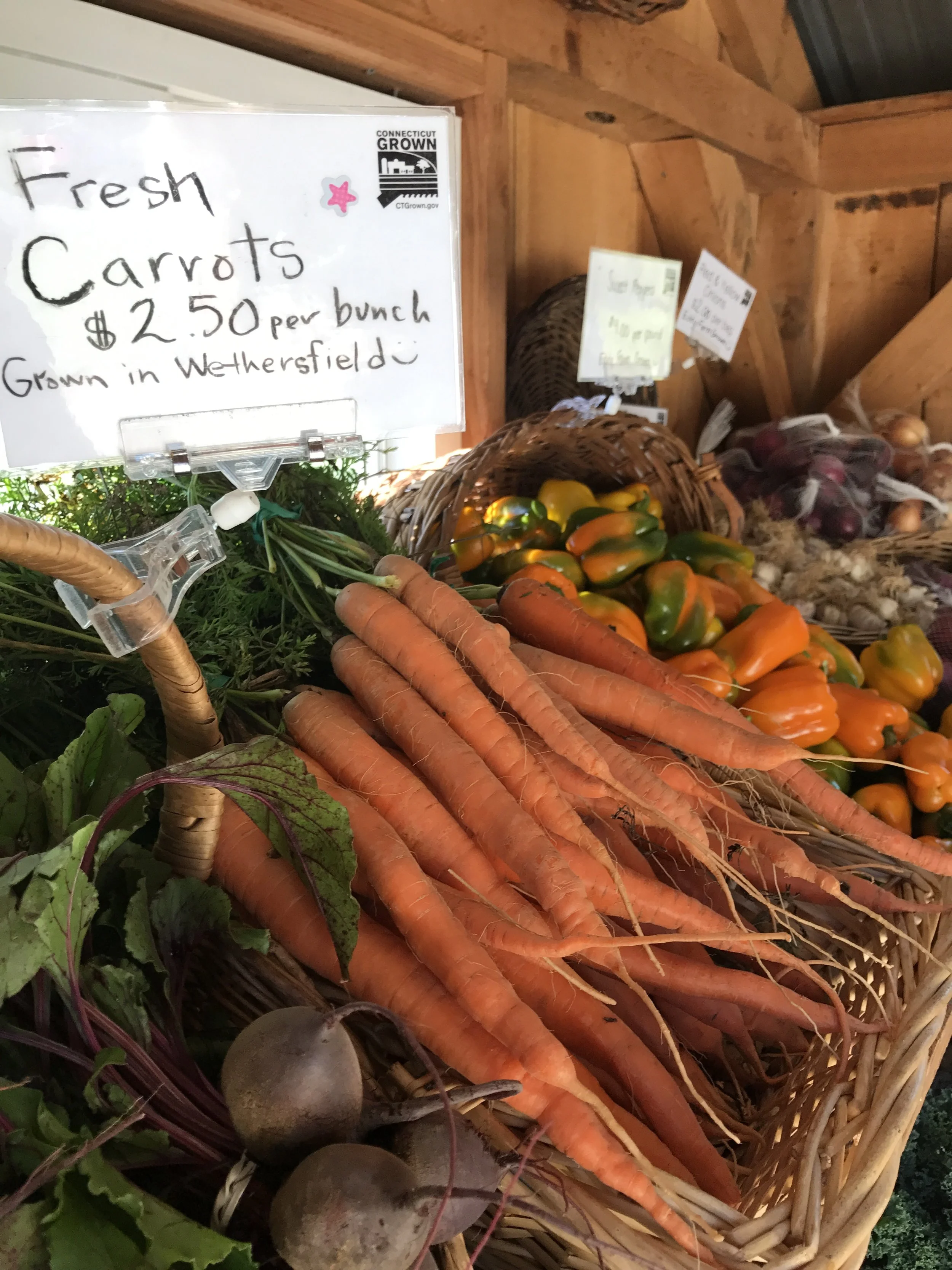 We have fresh carrots today at the stand, $2.50 a bunch!
